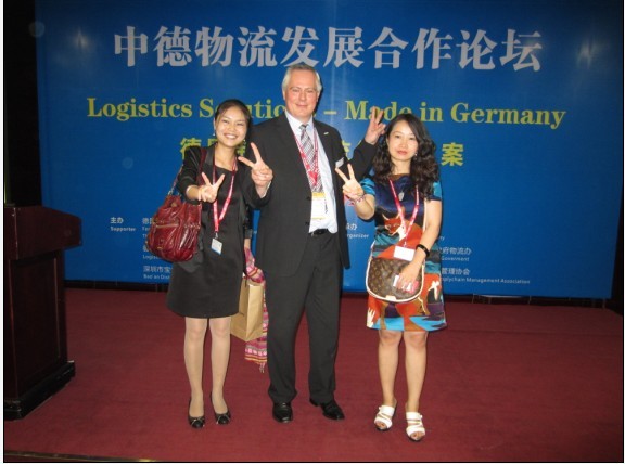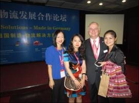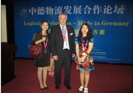 (与德国联邦交通建设与城市规划部货运物流处Norbert Tiedemann及德国工商总会陈婷女士合影)