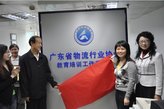 11点48分整,在礼炮声中,马仁洪秘书长与胡梅主任一起为教育工作委员会新址揭牌,同时为《广东物流》编辑部颁牌。会上,马秘书长对委员会的工作给予了充分的肯定,并预祝《广东物流》杂志越做越好!