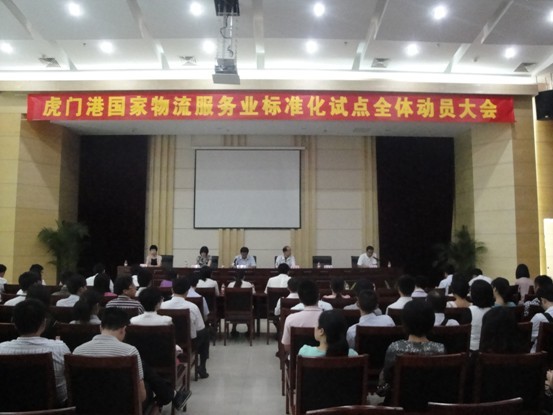 9月27日下午,虎门港国家物流服务业标准化试点全体动员大会在虎门港集团公司服务大楼礼堂隆重举行。出席大会的有广东省物流行业协会秘书长马仁洪、南方物流网信息中心总工程师吴迪,虎门港集团公司常务副总经理林爽、副总经理罗卫江。大会由罗卫江副总经理主持。