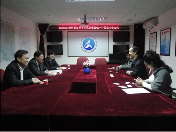 2月23日上午,香港贸发局叶泽恩助理总裁一行来访协会参观交流,受到秘书长马仁洪的热情接待。