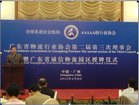 4月8日,为响应广东"三打两建"、建设幸福广东的活动口号,广东省物流行业协会联合广东省工商管理局共同组织开展的"广东省诚信物流园区"授牌仪式在广州鸣泉居度假村聚贤殿成功举行。省内外政府领导、兄弟协会和协会理事会成员共200多人出席了此会。