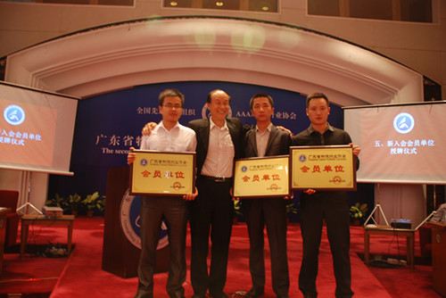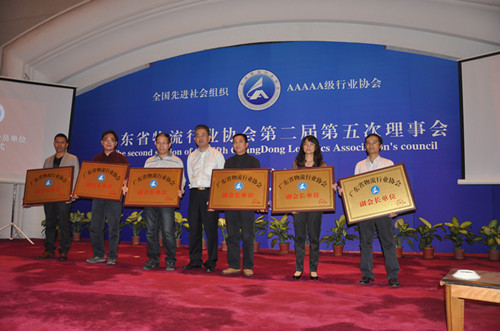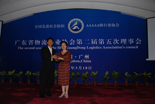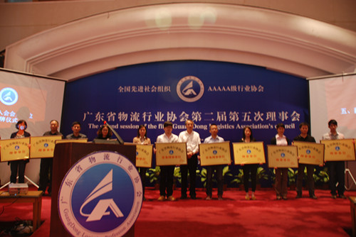 刘武会长和蔡朝林会长对新入会的副会长单位、理事单位企业授牌,省发改委刘文彬处长还为16家"广东省诚信物流企业"获奖企业颁发了荣誉证书。