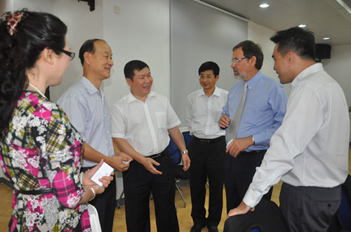 5月9-10日, 由广东省人力资源与社会保障厅主办,广东省职业技能鉴定指导中心承办的"粤新人力资源开发评价体系专家论证会议"在广东省职业技能鉴定南海中心会议室召开。参加会议的有广东省职业技能鉴定指导中心陈锐彬主任、广东省物流行业协会马仁洪秘书长、梁玉霞副秘书长、胡梅主任;邀请的还有中大牛端副教授,环众蓝仁昌博士,省自动化黄伟明主任。及新加坡政府威尔莫特博士、林炜伦中国区域主任一行16名专家、代表出席了会议。
