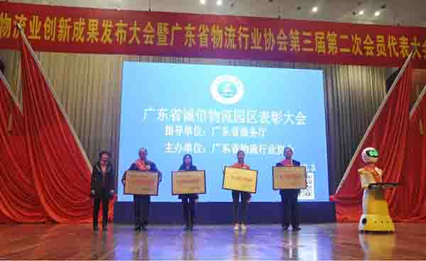 12月3日,2015年"广东省诚信物流园"在广州举行授牌仪式,广东省商务厅市场秩序与调节处黄述芸副处长为获评的4家物流园颁发了荣誉牌匾。