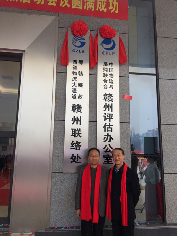 赣州市政府副秘书长谢卫东、广东省物流协会常务副会长马仁洪共同为粤苏皖赣四省物流大通道赣州联络处揭牌