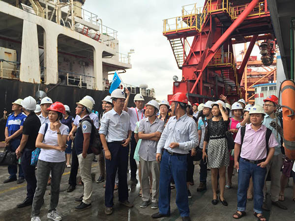 在广州发展能源物流集团有限公司刘晓副总经理的指引下,我会组织的百人考察团在其陪同下顺利进入广州发展燃料港口码头进行参观,先后对其煤炭传输带、燃料港口码头及设施进行细致考察。期间,参加考察的单位积极与广州发展能源集团刘晓副总经理进行互动和交流。