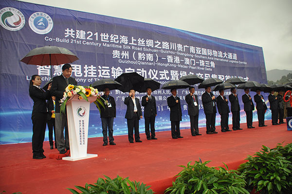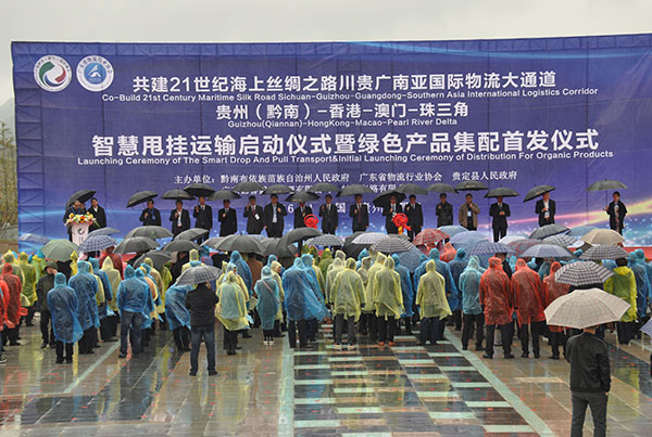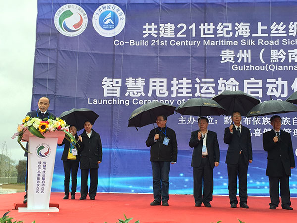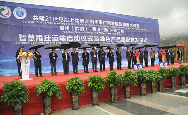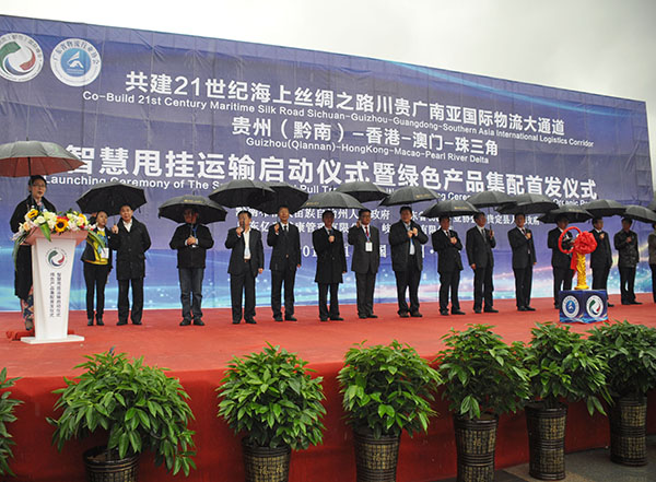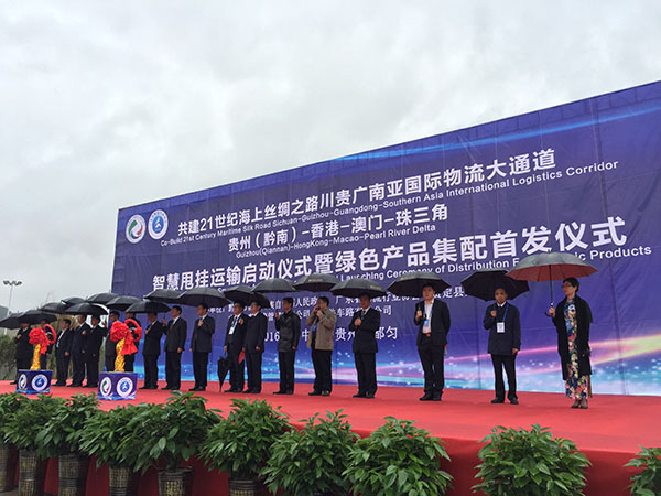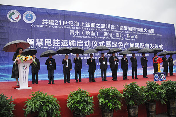 共建21世纪海上丝绸之路川贵广-南亚国际物流大通道贵粤港澳智慧甩挂运输启动仪式暨绿色产品集配首发仪式现场