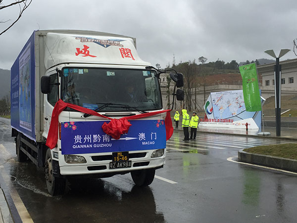 贵州黔南往澳门绿色产品集配车辆启动出发
