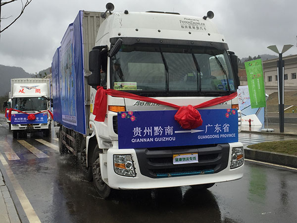 贵州黔南往广东省绿色产品集配车辆启动出发