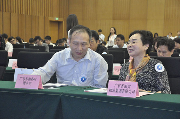 省商务厅调研员谭光明与我会会长单位——广东省南方物流集团有限公司官金仙会长交流
