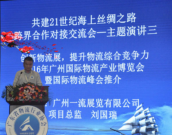 会议由我会梁玉霞秘书长、广东制造业协会杨鉴旻副会长、广东省食品(医药)行业协会党委周世明副书记致辞。梁秘书长致辞表示,古代海上丝绸之路和陆上丝绸之路,都是中国历史上横贯欧亚非大陆最早、最长、最持久的物流大通道。物流犹如两只巨手将中国与世界紧密联系在一起。通过建立物流通道拉动国际间的商贸、文化和技术深度交流,最终促进经济的共同发展与繁荣。由习近平主席提出的共建“21世纪海上丝绸之路”是中国与各国共同发展、共同繁荣,最后形成多赢合作局面的伟大构想。会议旨在为大家搭建跨界交流与分享平台,资源共享,信息互换,拥抱机遇,共同发展,为广东省参与建设21世纪海上海上丝绸之路,推动供给侧结构性改革,进行国际产能合作,打造广东广州国际航运中心贡献新力量,提供新支撑。