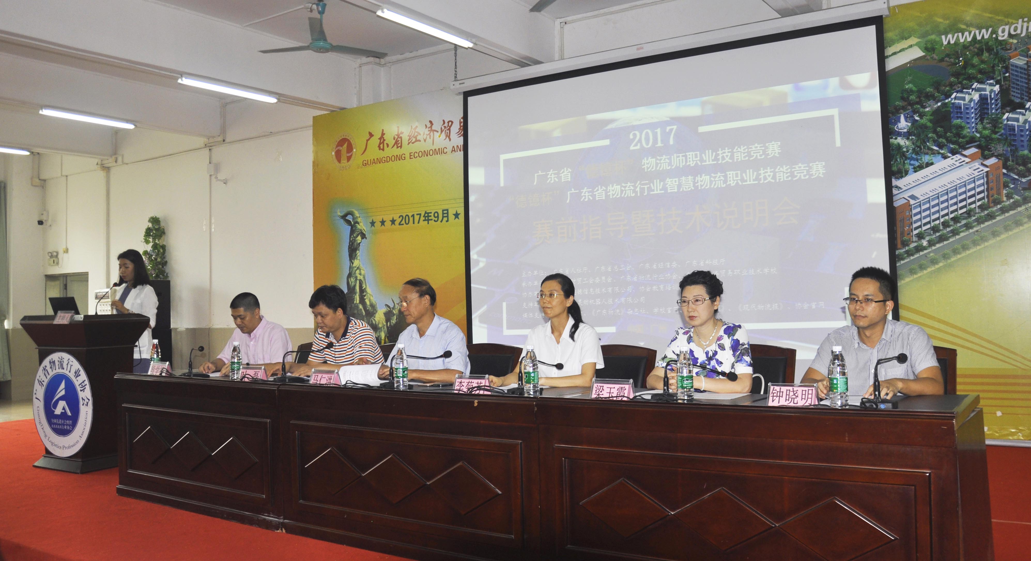 9月23日下午,2017广东省“德镱杯”物流师职业技能大赛和广东省物流行业智慧物流竞赛赛前指导说明会在大赛承办单——广东省经济贸易职业技术学校召开了赛前说明会,来自全省各学校、企业的参赛选手、领队、指导老师参加此次说明会。说明会邀请的领导专家有:国际物流产业战略研究院院长马仁洪、广东省职业技能鉴定指导中心副主任叶磊、广东省经济贸易职业技术学校副校长李菊芳、广东省物流行业协会秘书长梁玉霞、总冠名单位-广州市德镱信息技术有限公司总经理殷学祖、大赛支持单位-广州普华灵动机器人技术有限公司钟晓明工程师。大赛组委会负责人胡梅、何大宇、陈艳嫦、林晓生参与现场答疑,说明会由协会教育委员会综合主管王小云主持。