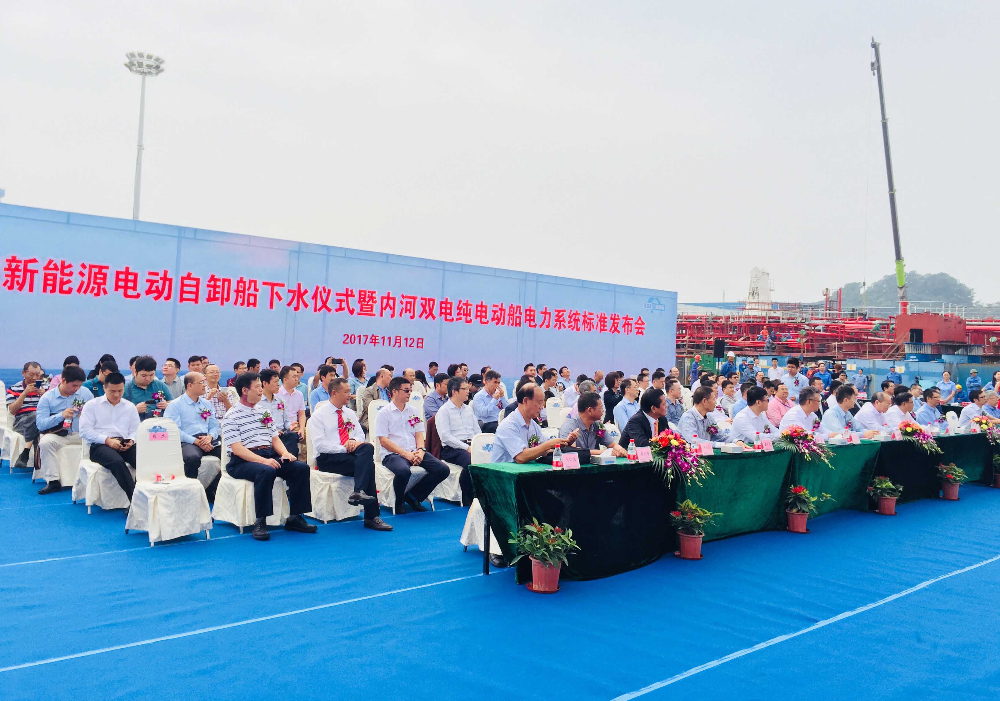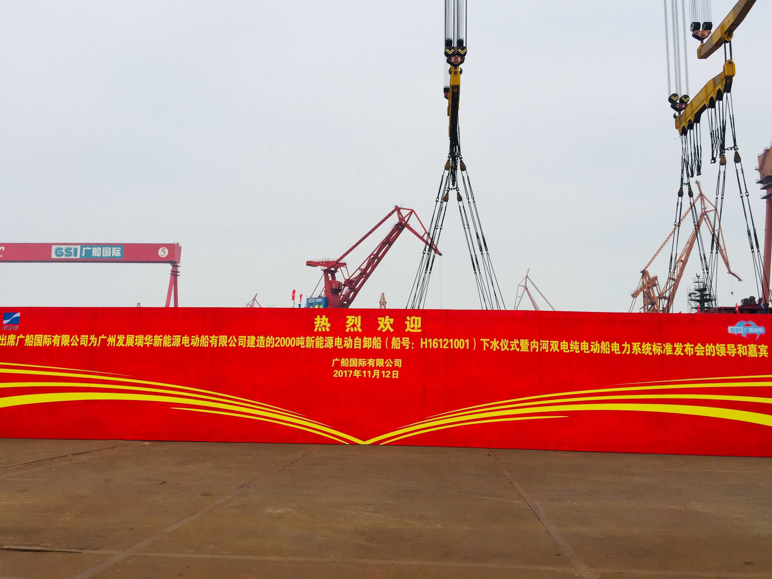 11月12日,广州发展能源物流集团、新能源电动船产业标准化联盟在南沙区龙穴岛广船国际造船基地成功举办“2000吨级内河散货纯电动船下水试航暨新能源电动船产业标准化联盟(以下简称联盟)标准发布仪式”。广东省质量技术监督局、广州港务局、南沙开发区,广东省物流行业协会、广东省物流标准化技术委员会(GD/TC4)、联盟成员及相关合作单位主要领导百余人出席活动,共同见证。