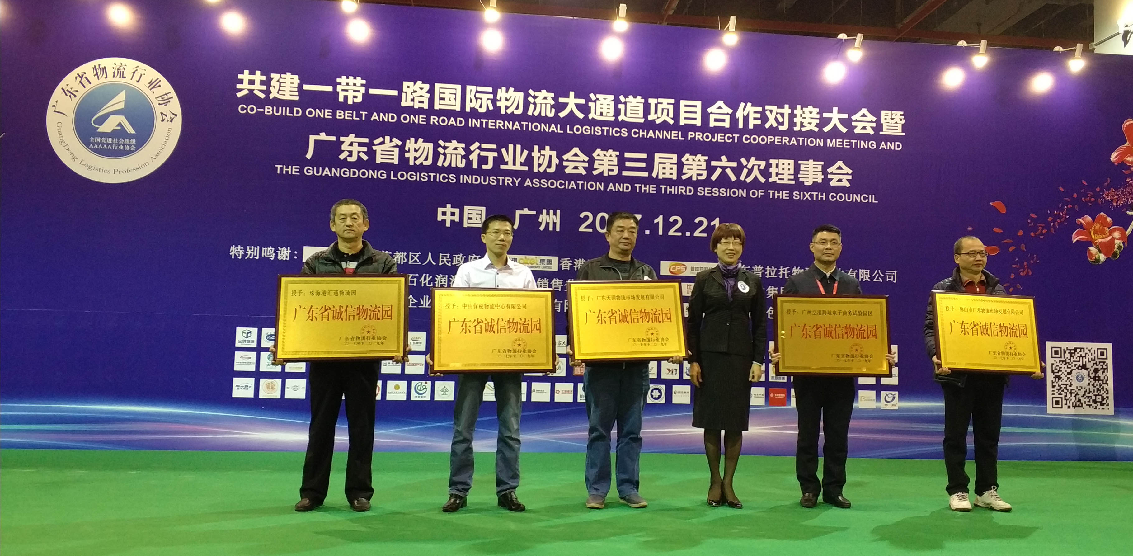 珠海港汇通物流园、广州空港跨境电子商务试验园区、中山保税物流中心有限公司、佛山市广禾物流市场发展有限公司、广东天润物流市场发展有限公司等5家企业获选2017年度“广东省诚信物流园区”。