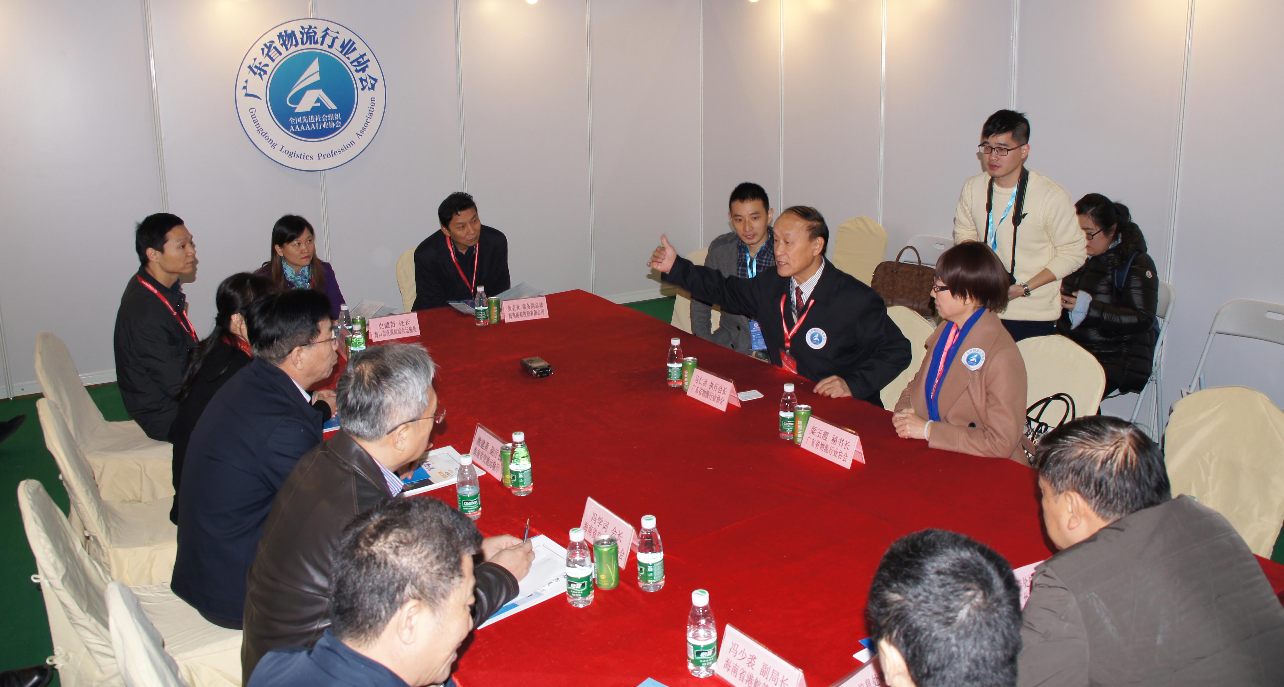 展览会期间,姚副厅长为开幕式做启动嘉宾,随后海南省交通运输厅代表团一行分别对展商进行走访,对本次展会高度评价,并与协会梁玉霞秘书长、国际物流产业研究院马仁洪院长进行座谈,听取了关于此次展览会参展情况和广东省物流业发展经验的介绍,双方就粤海物流通道建设,物流园区开发、区域物流业发展,优势物流资源合作等方面进行深入探讨。