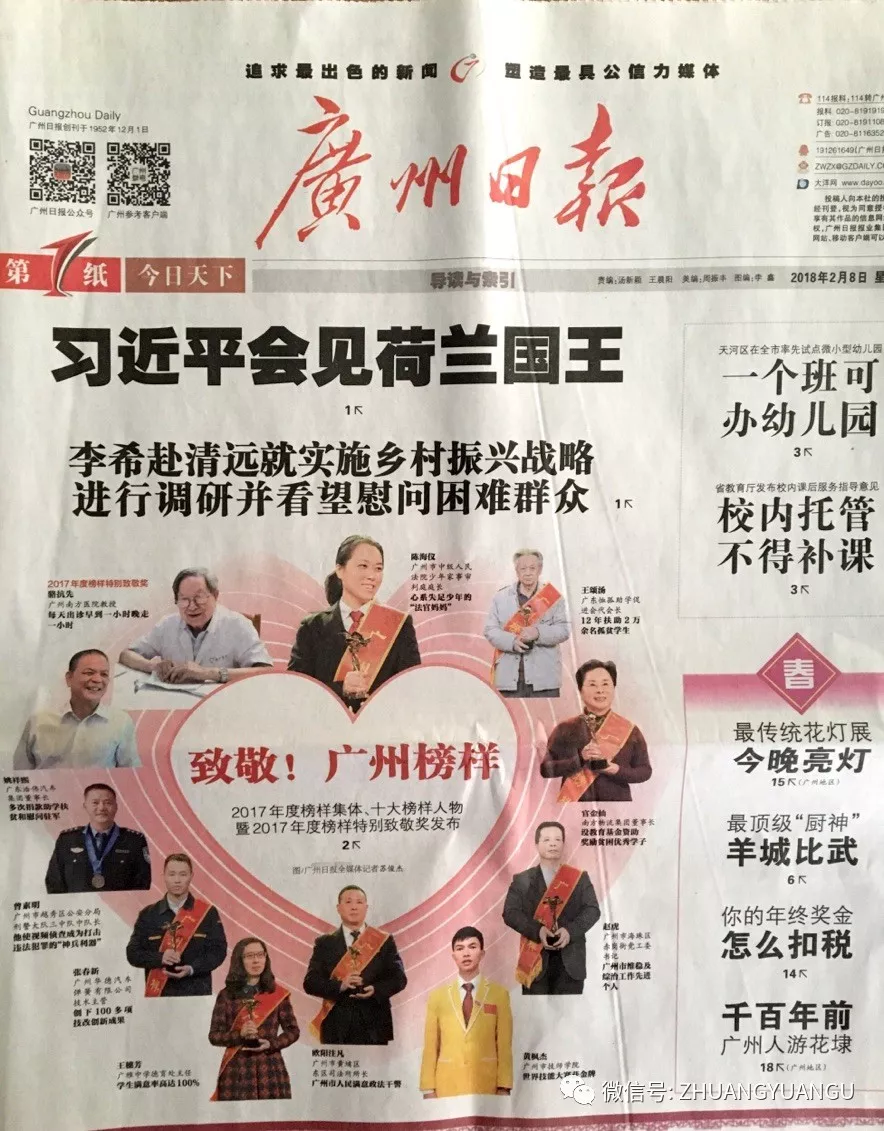 用榜样感动广州,以温暖传递力量。2月7日晚,广州榜样发布厅发布“2017年度十大榜样人物”,协会官金仙会长作为优秀企业家代表获此荣誉称号。她热心公益,积极回馈社会,和其他榜样人物一起,以其独特的感染力,弘扬着至善至美的中华优秀传统文化,并将其进行创造性的传承,使其成为具有新时代内涵的榜样精神,持续赋予广州前行力量。