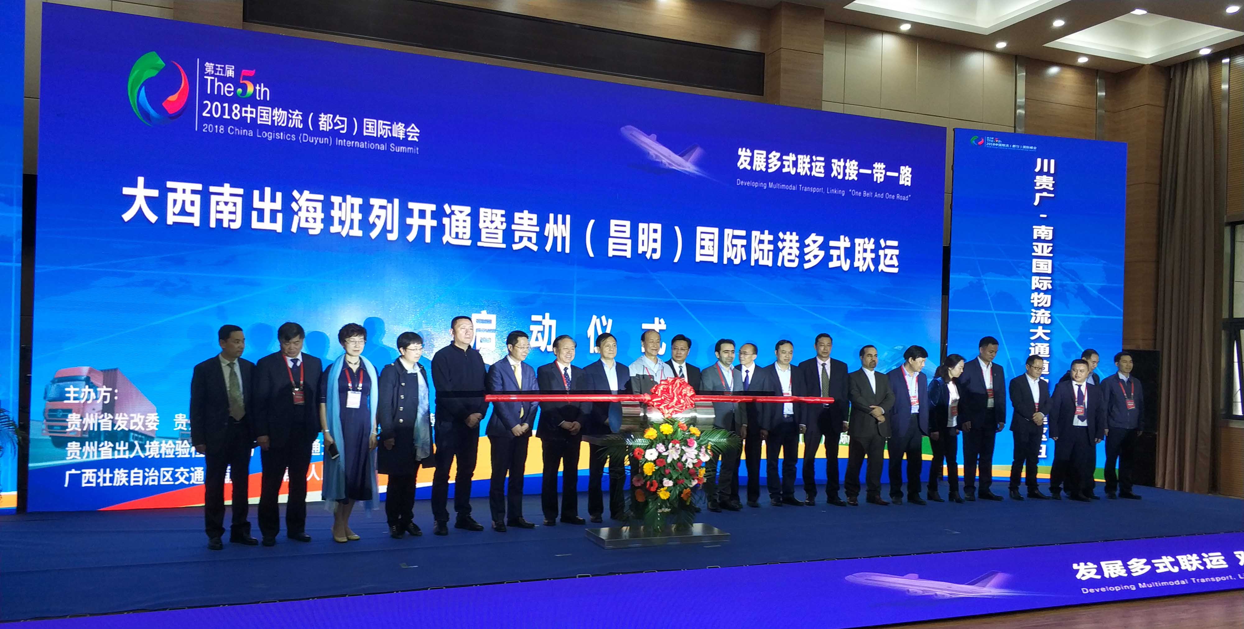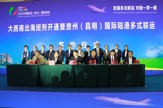 4月27日,由广东省物流行业协会策划并推动的川贵广-港澳-南亚国际物流大通道项目贵州(昌明)国际陆港节点“大西南出海班列开通暨贵州(昌明)国际陆港多式联运”在贵州省黔南州贵定县正式启动开通。
