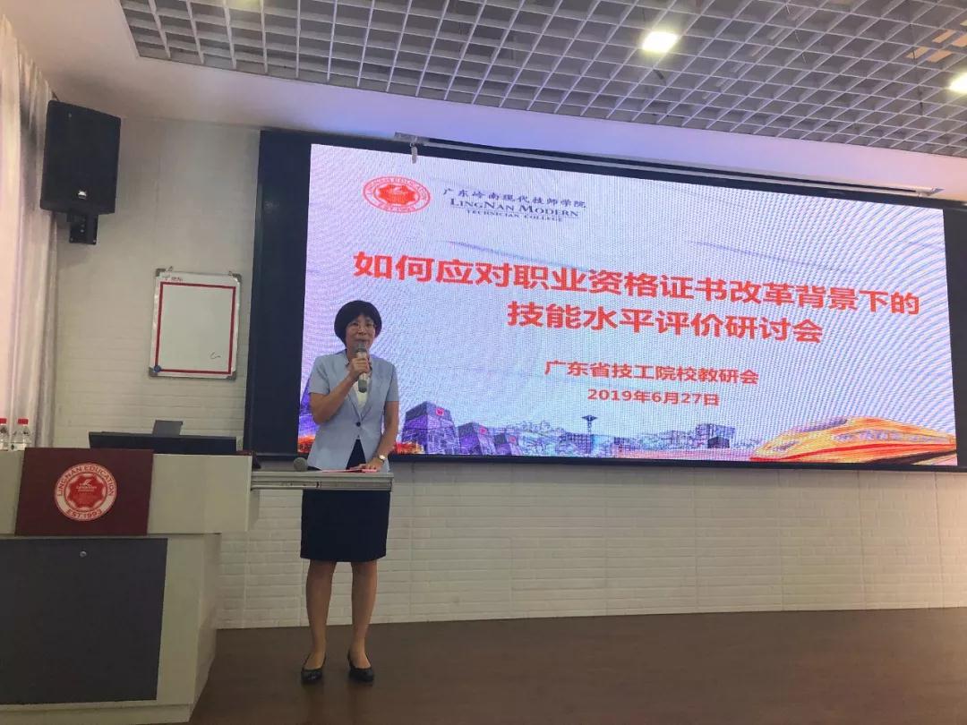 6月27日下午技工院校如何应对职业资格证书改革背景下的技能水平评价研讨会于会员单位—广东岭南现代技师学院召开。省职业技术教研室、行业协会代表、企业代表、技工院校教学管理、实训管理、技能鉴定所、专业系部等相关领导及教师近90余人参加,广东省物流行业协会副秘书长胡梅、教育委员会主任单福情、教育委员会综合部主任林晓生作为行业协会专家代表出席会议。会议由广东岭南现代技师学院郑楚云副院长主持。