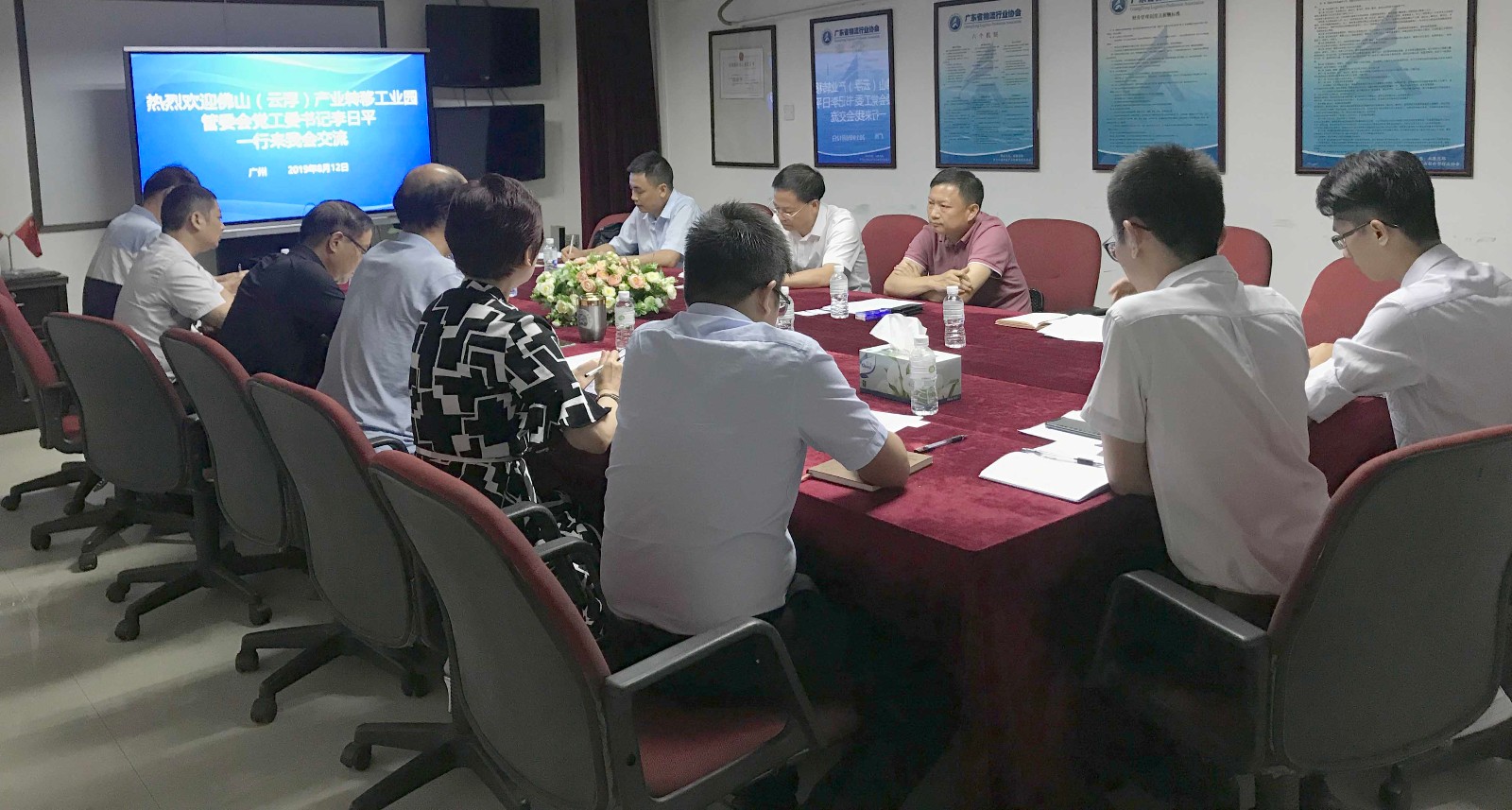 8月12日,佛山(云浮)产业转移工业园管委会党工委书记李日平一行到访我会交流,受到了梁玉霞秘书长、马仁洪院长的热情接待。