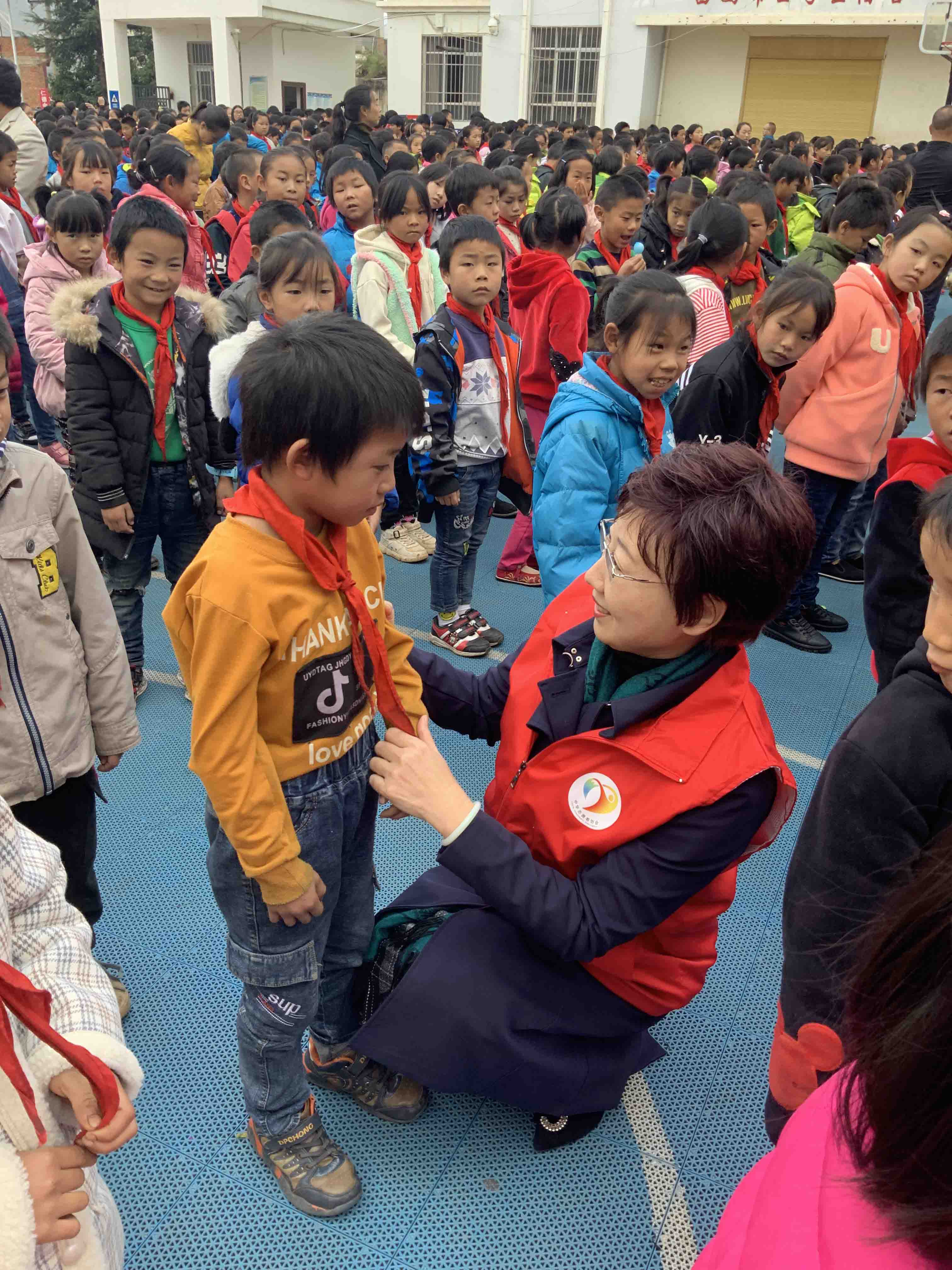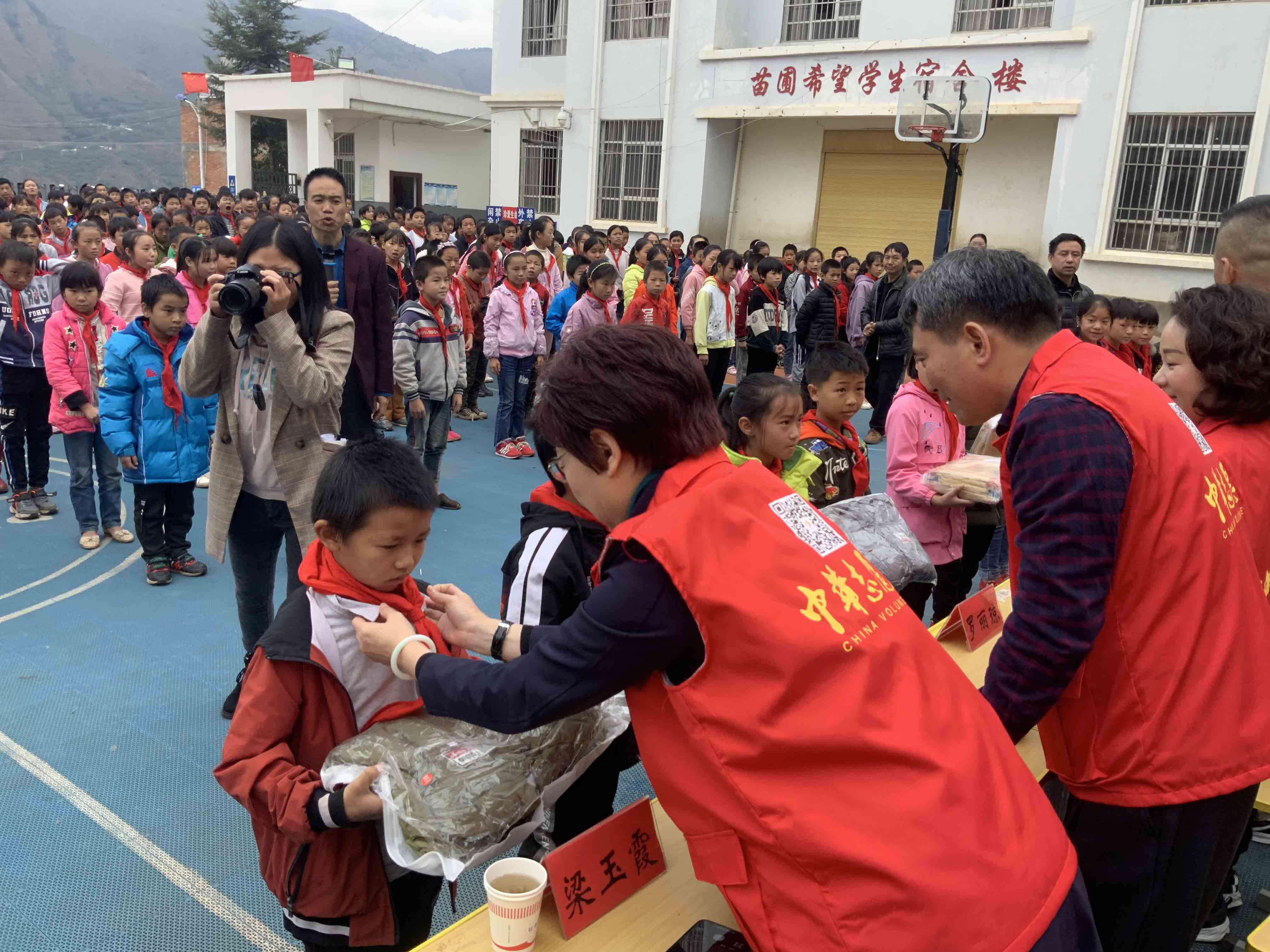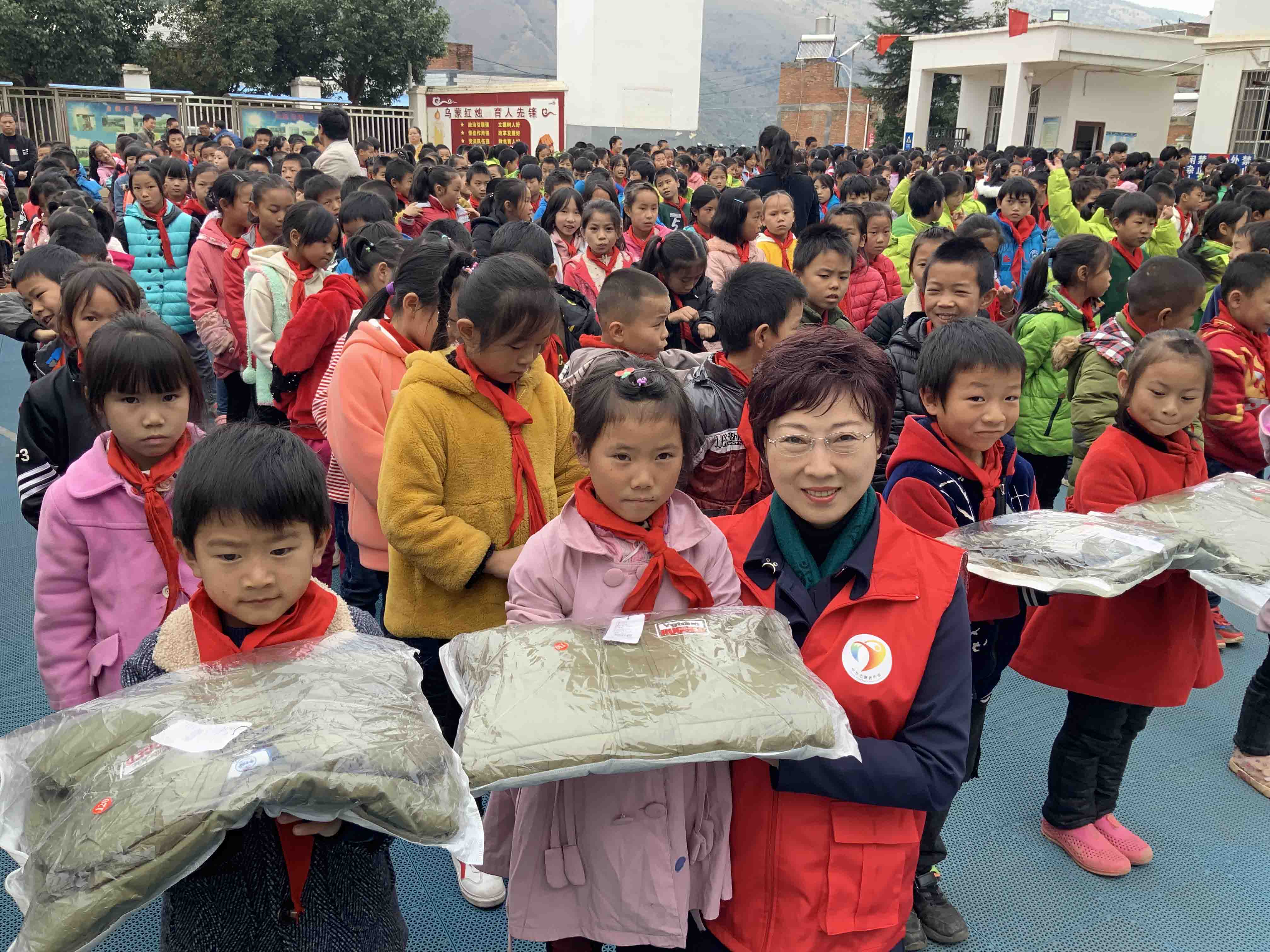“不忘初心,奉献爱心,协会开展地震灾区献爱心活动”在鲁甸龙头山镇光明村小学隆重举行,县有关领导和在教师校生共600多人出席了活动。期间进行衣物捐赠,共捐赠棉衣200件、毛衣500件、裤子400件等近40万元的过冬衣物,全过程充满了热烈的气氛和孩子们的欢快笑声。