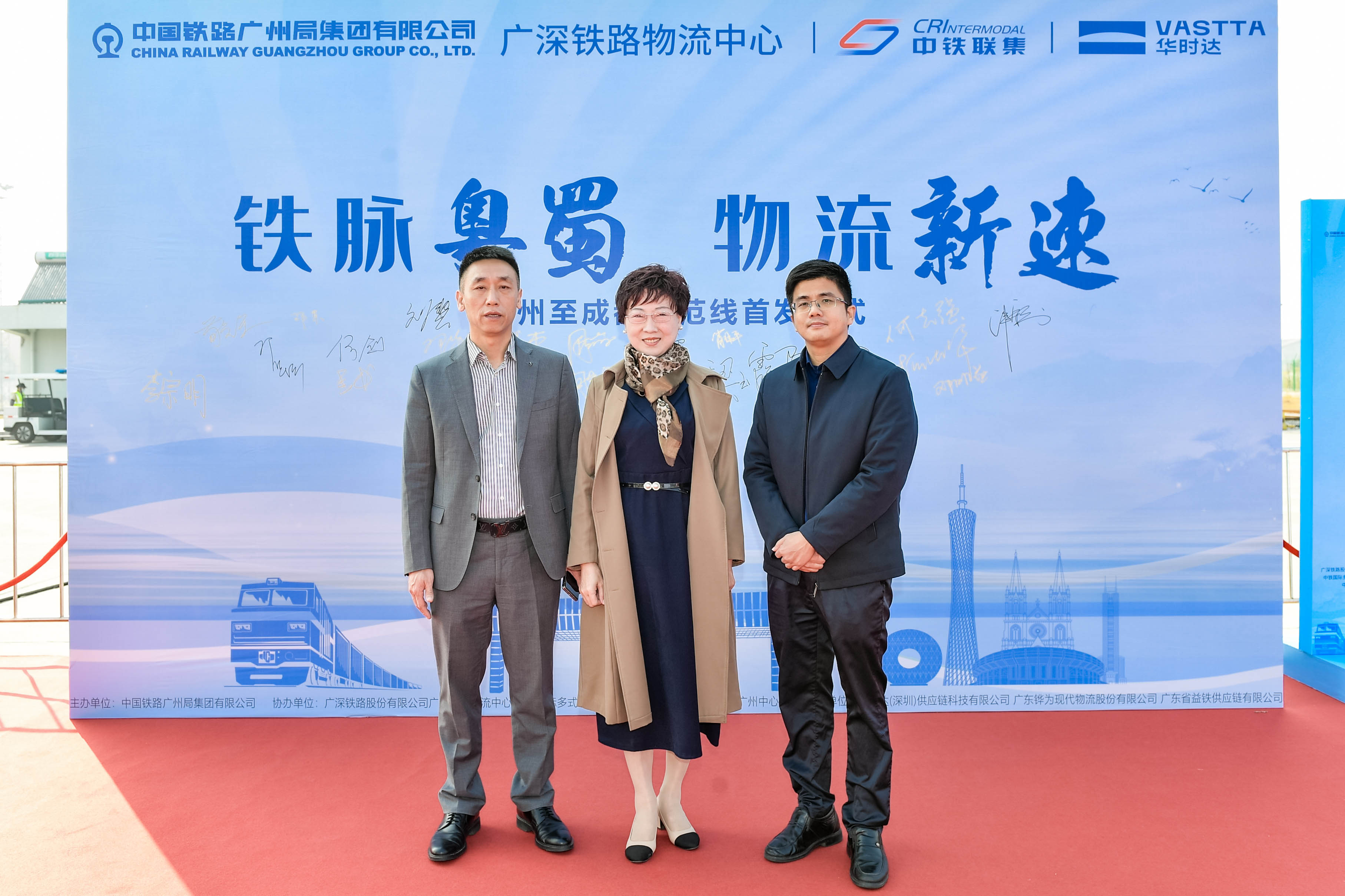 1月6日上午,协会书记梁玉霞应邀出席中国铁路广州局集团有限公司主办的全国首条快捷物流产品示范线广州—成都班列首发仪式。