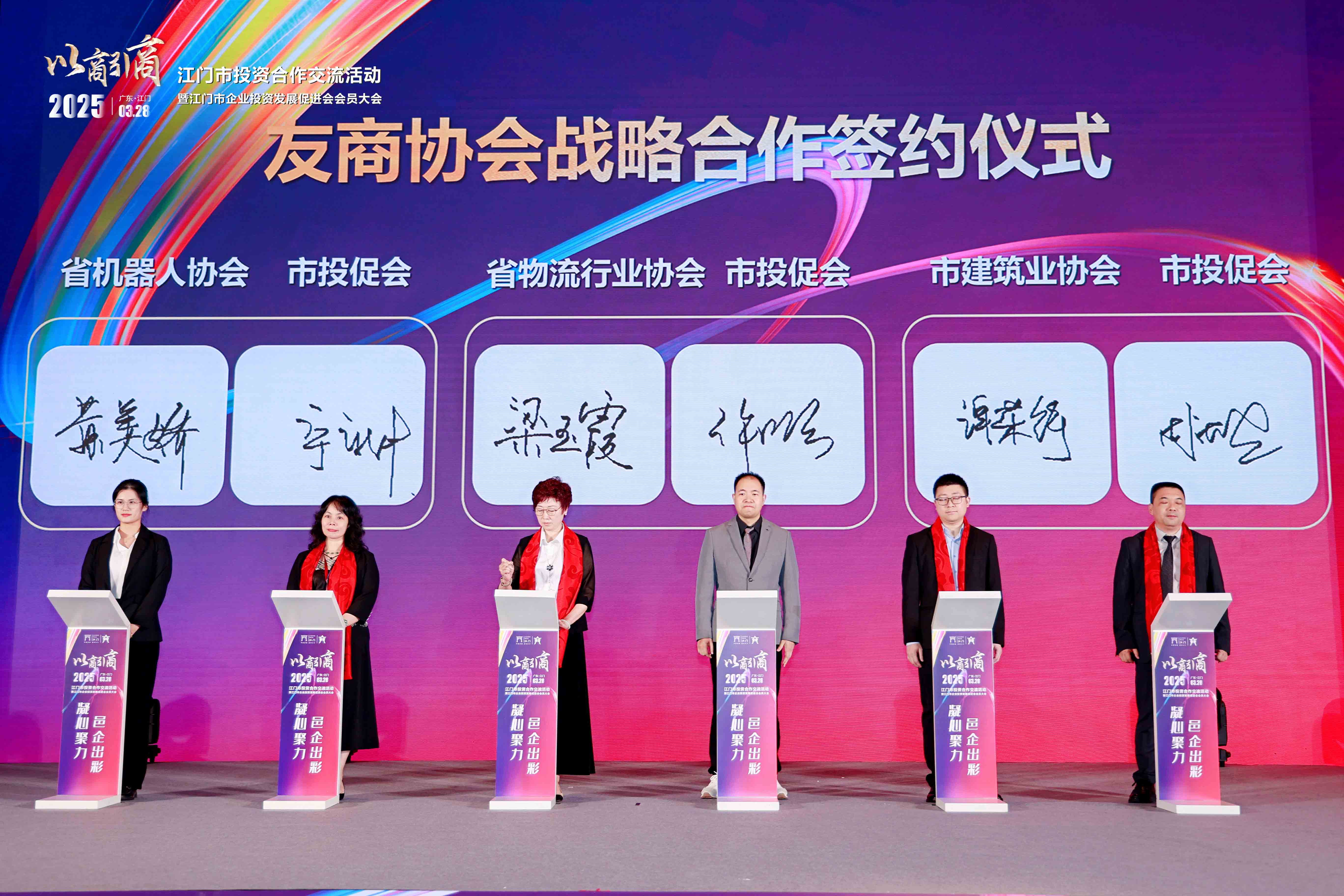 对接会后,协会领导出席2025年江门市“以商引商”投资合作交流会暨江门市企业投资发展促进会会员大会,协会与江门市企业投资发展促进会签署战略合作协议。