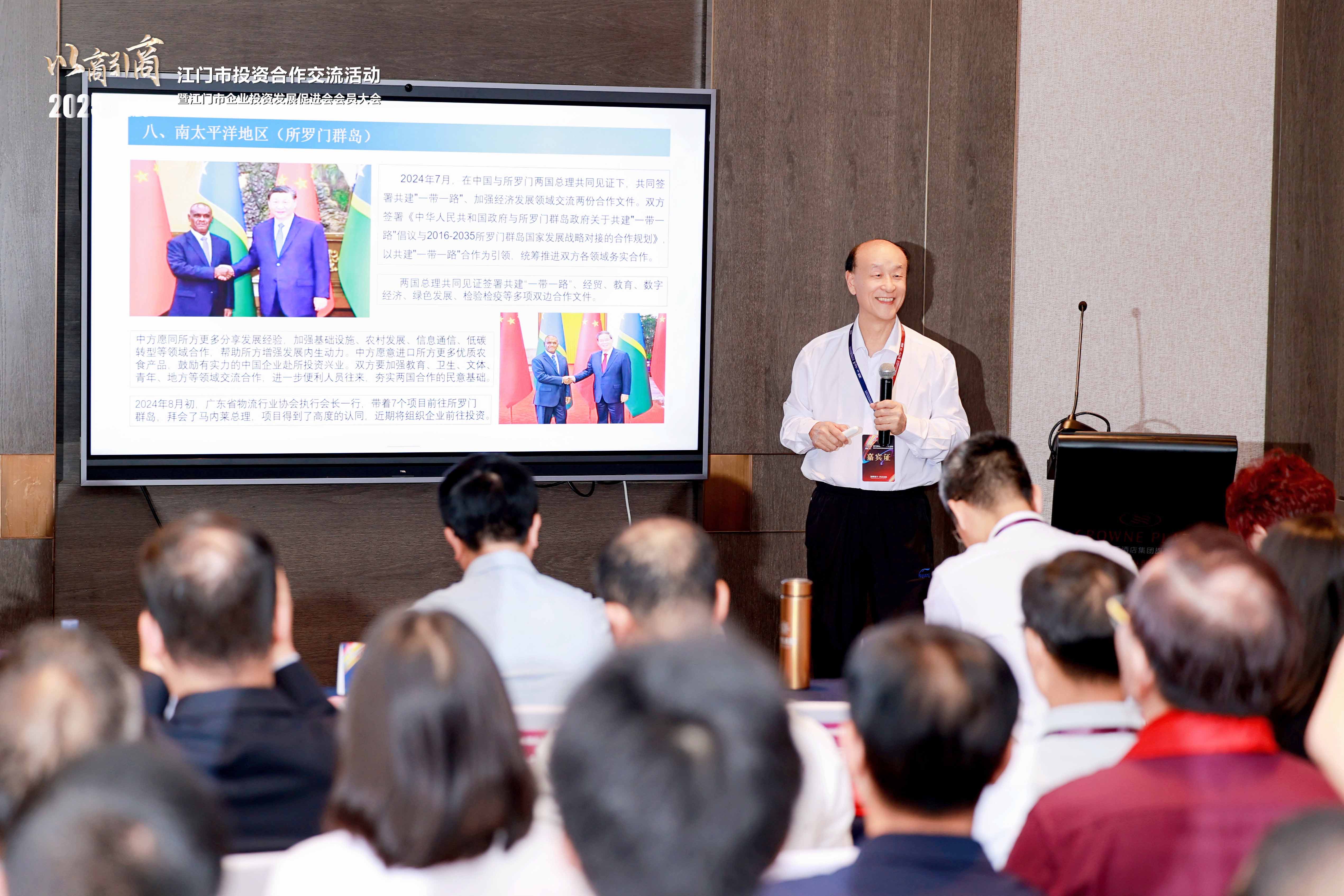 会上,马仁洪执行会长作《“一带一路”国际物流大通道的建设及机遇》主题分享,详细分析了粤港澳大湾区与“一带一路”倡议的深度融合前景,并指出,在“双通道”(深中通道、黄茅海跨海通道)开通的背景下,江门市物流产业迎来发展机遇,可借助粤港澳大湾区和粤西之间的门户地位优势,通过产业合作和引进资源,快步地走向国际。