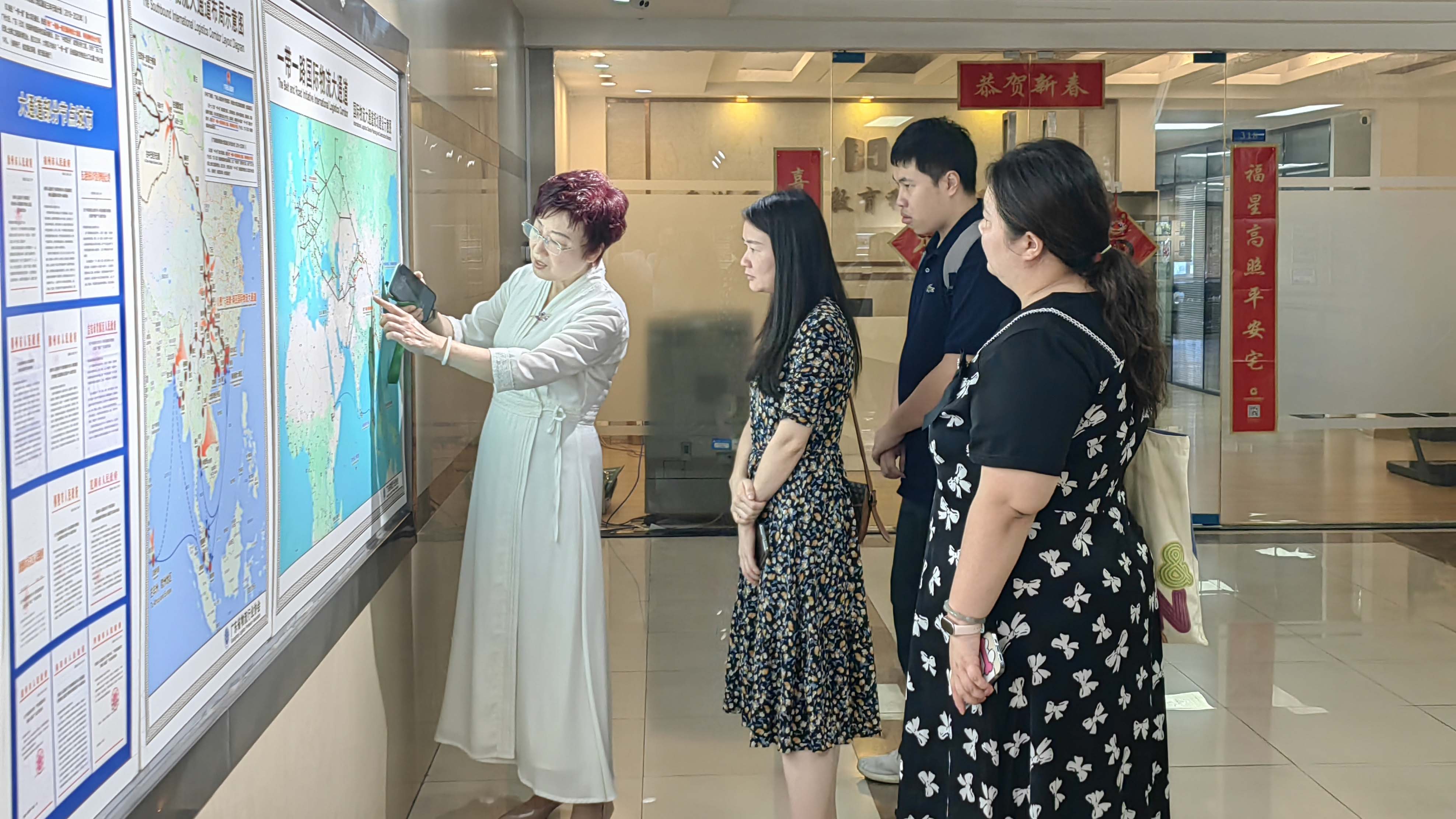 在梁书记的陪同下,李主任一行参观了协会策划的“一带一路”国际物流大通道项目成果展区,梁书记介绍了协会开展的工作,并表示协会在大宗商品贸易、国际海外仓布局及跨境物流资源对接等方面具备显著优势,并表达了与华商国际建立合作的期望。