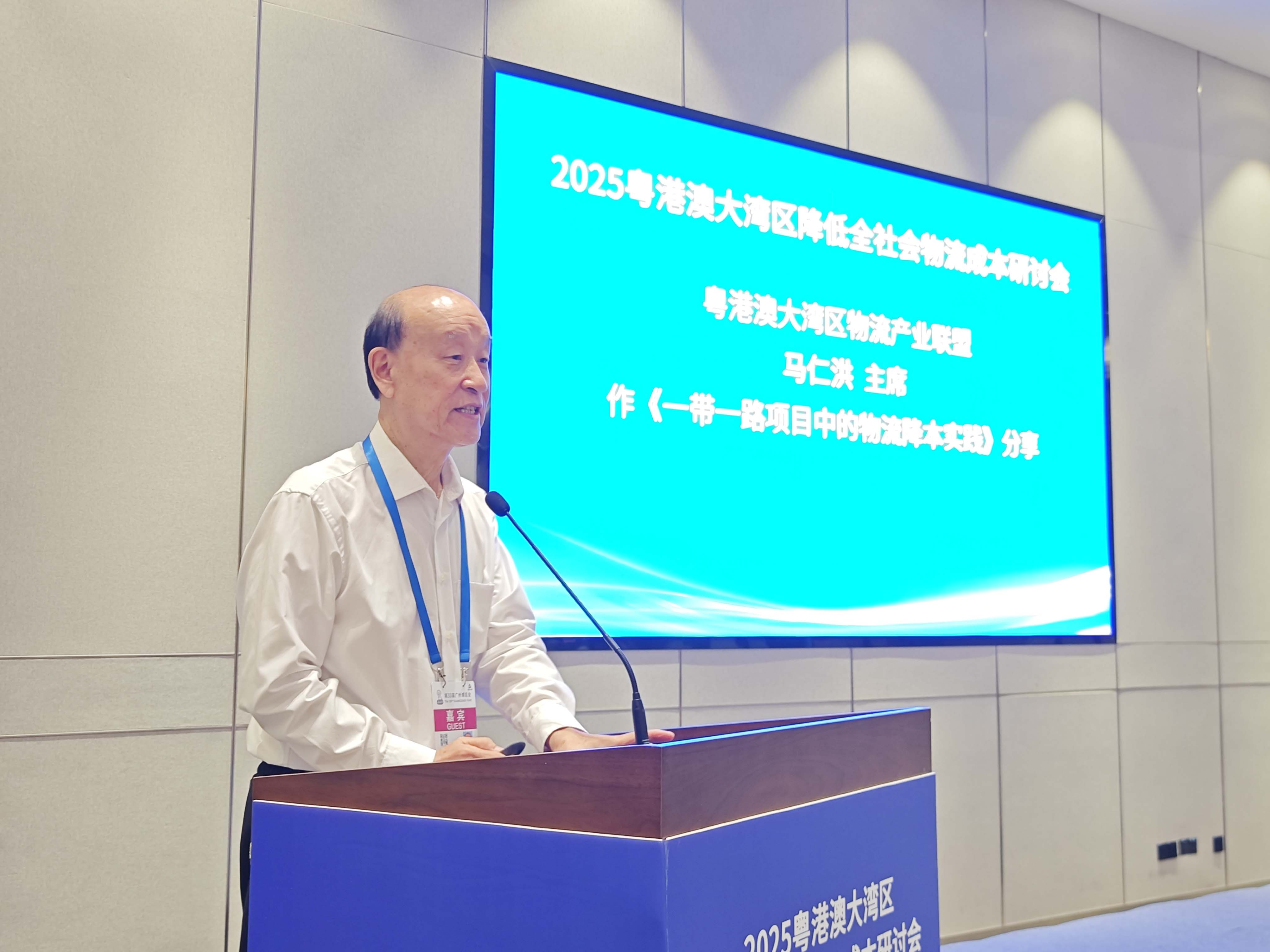 协会执行会长、粤港澳大湾区物流产业联盟主席马仁洪以《"一带一路"项目中的物流降本实践》为主题,深入剖析了当前物流行业的发展现状,并重点分享了协会正在推进的"所罗门群岛国际合作项目"等典型案例。