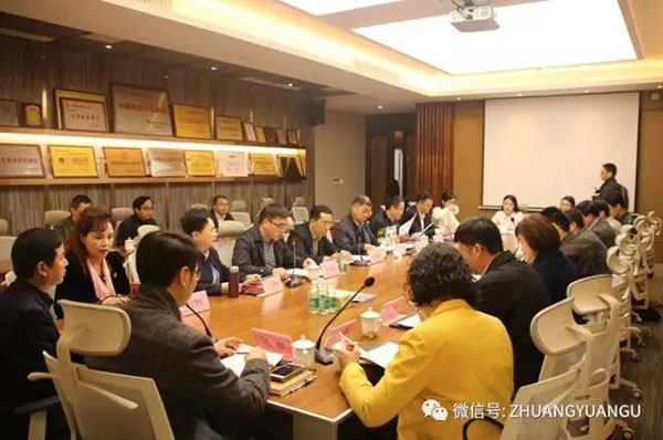最后,领导和专家一行在南方物流集团会议中心召开了座谈会,黄埔区科工商信局领导就广州市黄埔区“互联网+”电子商务建设情况做了汇报,协会会长、南方物流集团董事长官金仙就状元谷的发展状况、未来建设规划等做了介绍。