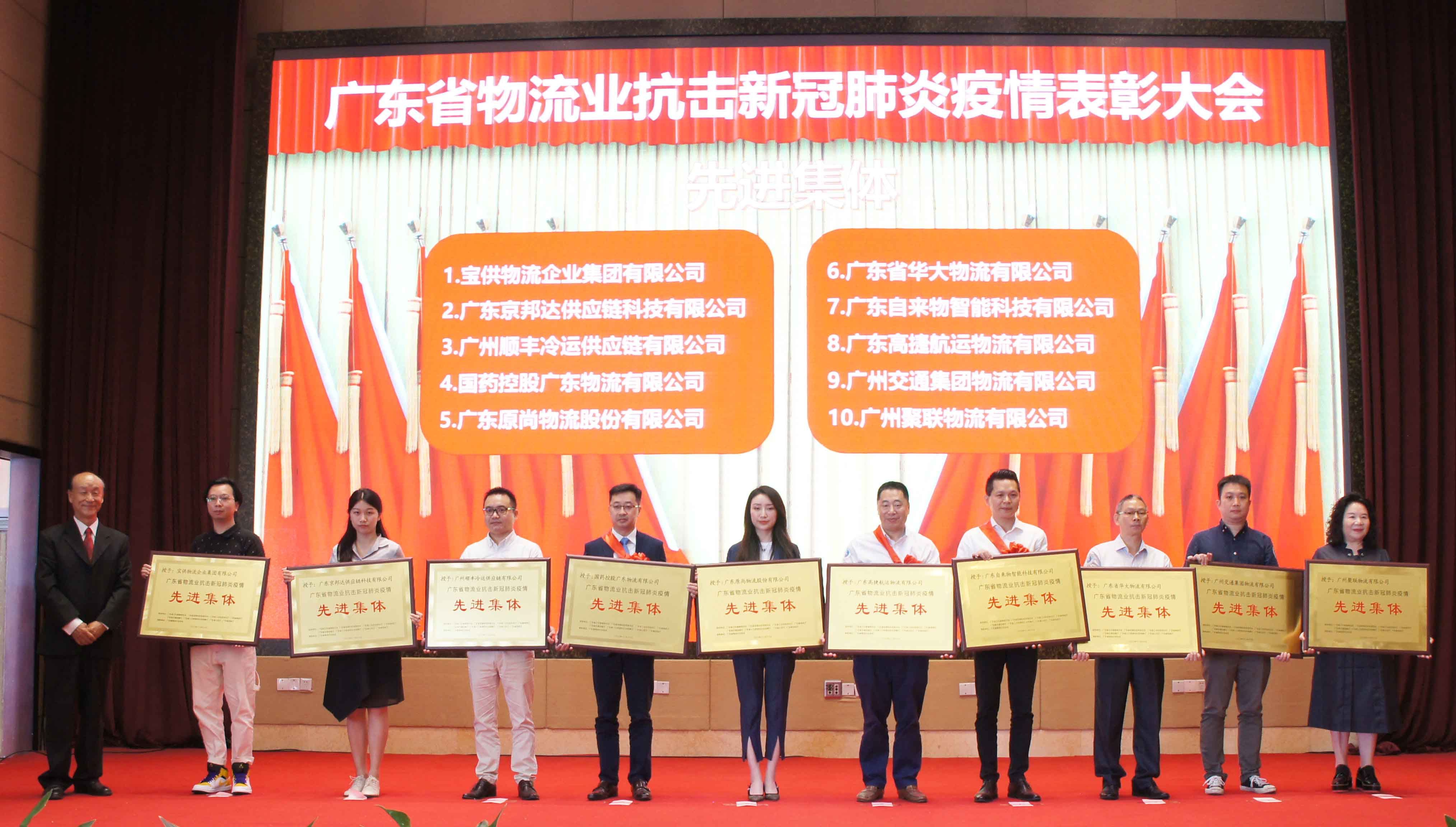 近日,由广东省卫生健康委员会、广东省商务厅、广东省交通运输厅指导,广东省物流行业协会主办的“广东省物流业抗击新冠肺炎疫情表彰大会”在广州隆重召开。协会副会长单位广州聚联物流有限公司荣获“广东省物流业抗击新冠肺炎疫情先进集体”荣誉称号!