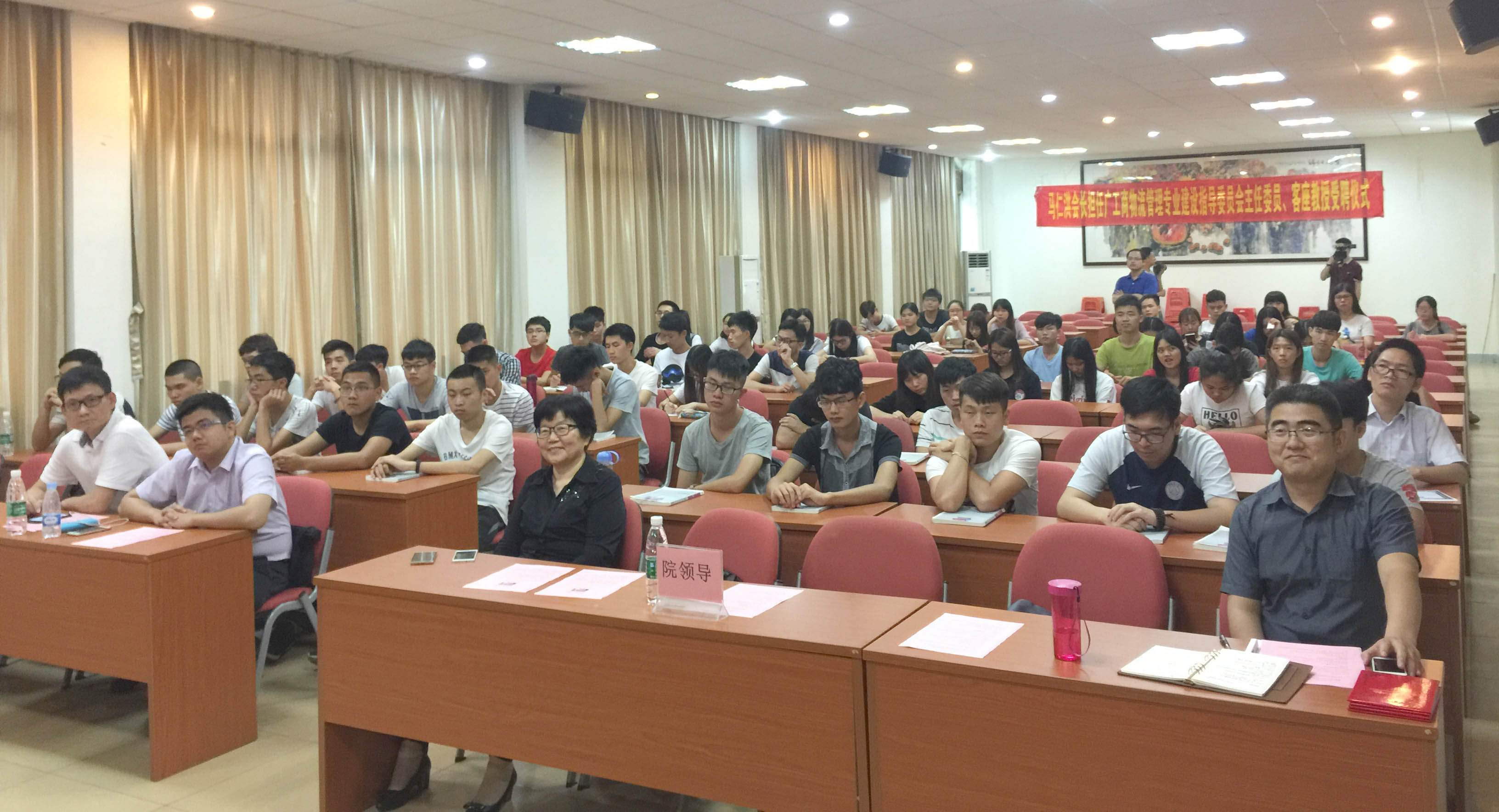 为进一步有效搭建物流标准化产学研基地和校企合作平台,马仁洪秘书长不仅为学院物流管理专业的教师和学生作“创新物流标准体系,融合一带一路战略”的专题讲座,而且与王院长一行举行专题座谈会,就物流产业的发展现状与前景、生产性与生活性物流的发展、冷链与第三代物流园等重点业态、物流职业教育的难点、创新开展物流标准化人才培养与产学研基地建设发展工作等各方面进行交流和深入探讨。