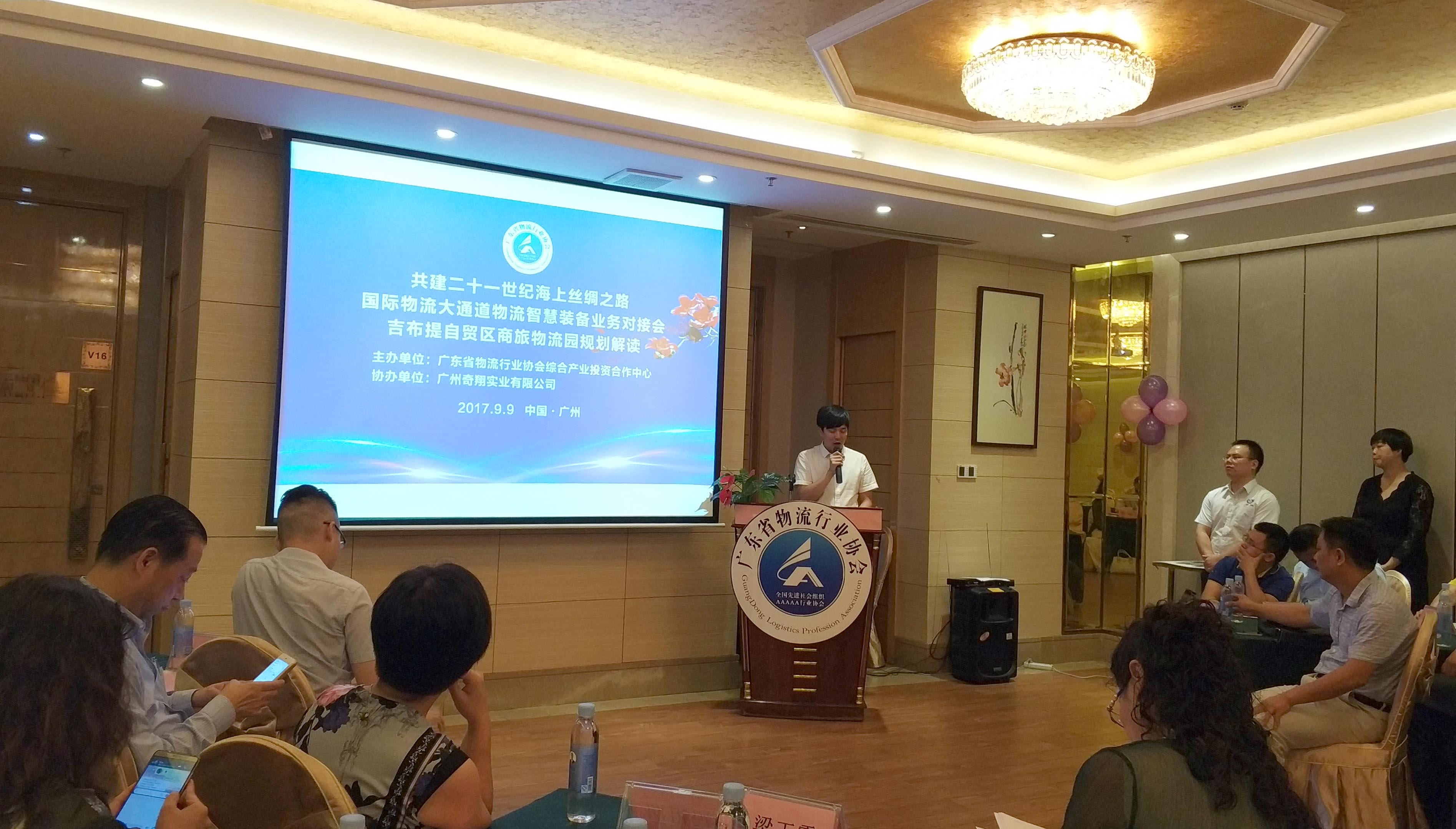 9月9日,由协会综合产业投资合作中心主办、副会长单位——广州奇翔实业有限公司协办的“共建二十一世纪海上丝绸之路国际物流大通道物流智慧装备业务对接会暨吉布提自贸区商旅物流园规划解读会”在广州召开。会议吸引了装备制造企业、物流企业50余人参加。