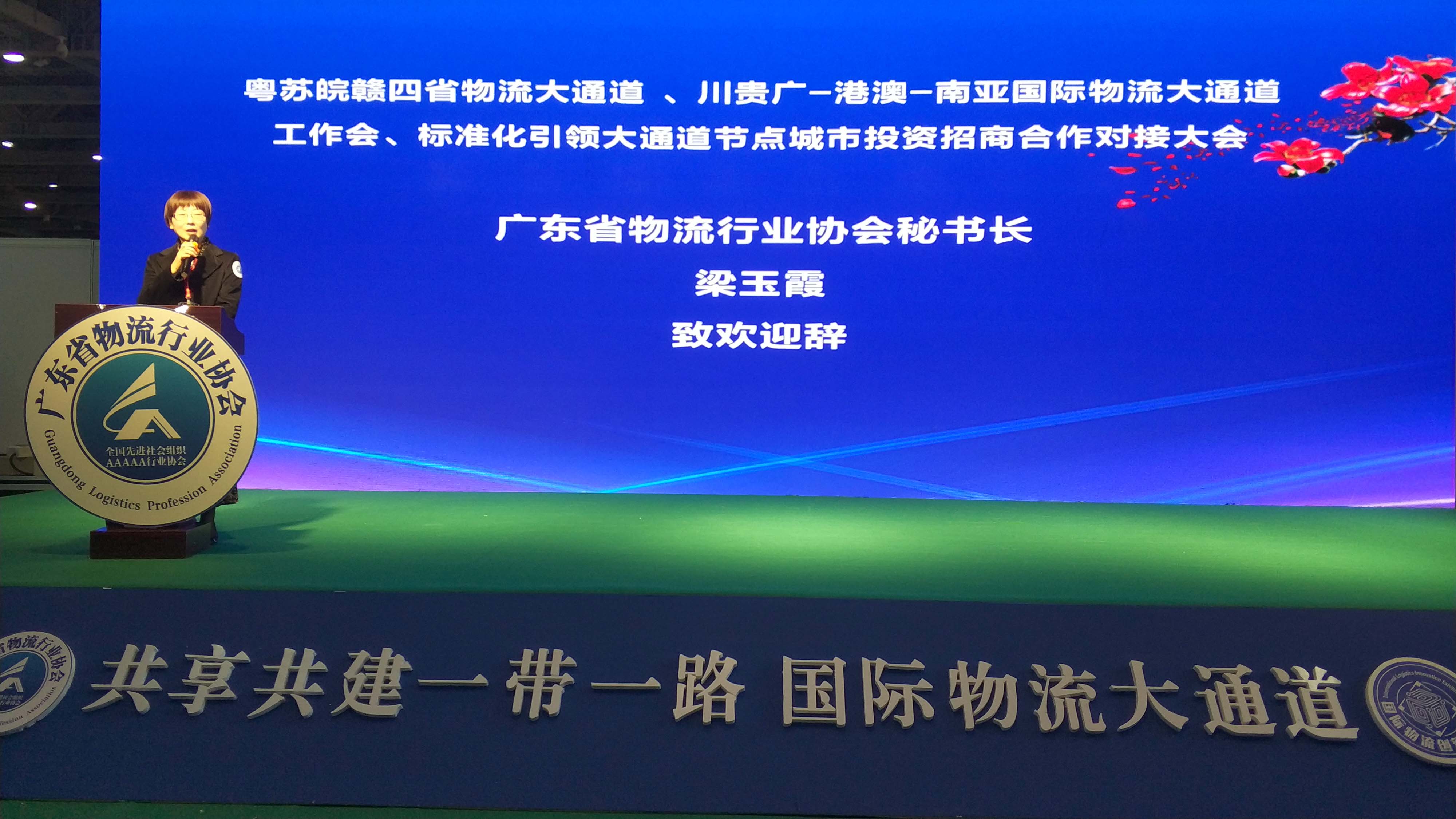 12月22日,广东省物流标准化技术委员会(GD/TC4)、广东省物流行业协会以“创新,增效,标准,智慧”为主题,在广州顺利召开“粤苏皖赣四省物流大通道、川贵广-港澳-南亚国际物流大通道工作会暨标准化引领大通道节点城市投资招商合作对接大会”。GD/TC4谢诚杰副秘书长、部分委员、肇庆市物流标准化产学研基地、东莞市智能物流标准化实验基地,广东省物流行业协会部分会员,粤苏皖赣四省物流大通道、川贵广-港澳-南亚国际物流大通道部分节点政府领导100多人参加了会议。