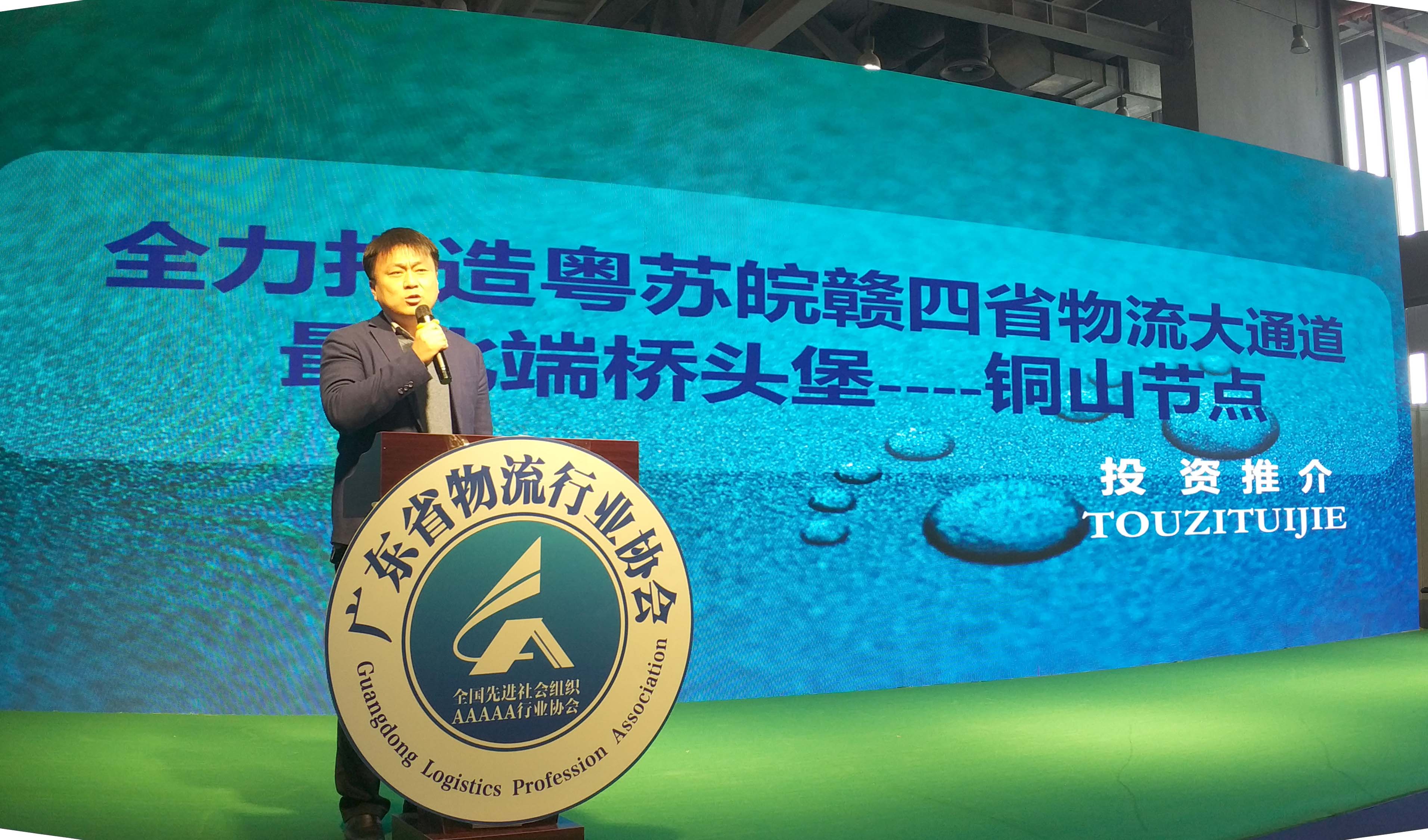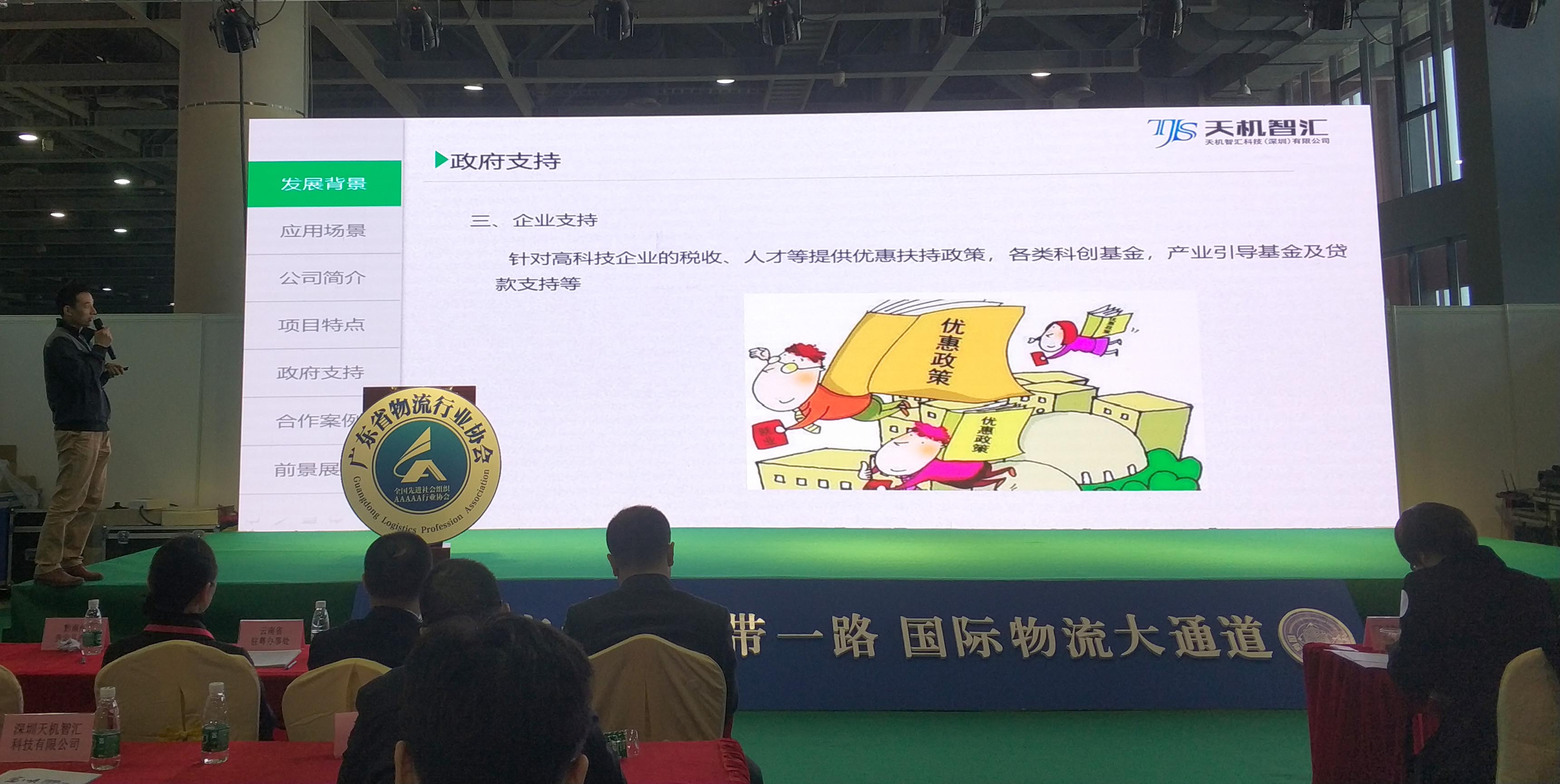 会议由广东省物流行业协会梁玉霞秘书长致欢迎辞,广东省物流标准化技术委员会(GD/TC4)马仁洪秘书长作“标准联通一带一路”专题演讲并介绍国际物流大通道总体情况。国际物流大通道节点代表——徐州铜山区发改委马晓明副主任、黔南州贵定县政府周后强副县长、自贡市富顺县政府办吕权亮副主任、昆明市宜良县人民政府工业园区李伟处长、安顺市黄铺新区管委会邹斌主任助理先后进行“招商引资”专题推介。国际物流大通道重点推介合作企业、广东省物流行业协会团体标准重点推进企业代表——中保斯通集团江峰市场总监、天机智汇(深圳)科技有限公司罗壮总经理先后进行“标准化创新成果”推介。