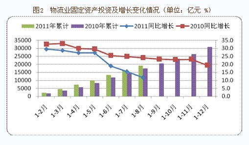 三、物流业固定资产投资增速回落,且幅度有所扩大