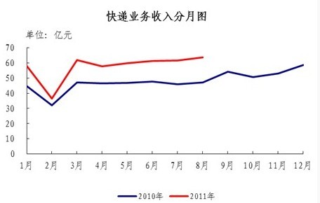 8月份,快递业务量完成3.1亿件,同比增长58.5%;业务收入完成63.7亿元,同比增长35.3%。