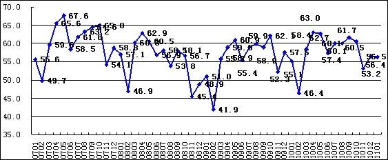2011年1月,中国物流与采购联合会(CFLP)发布的中国非制造业商务活动指数为56.4%,比上月回落0.1个百分点。由于非制造业没有综合指数,通常以商务活动状况指数来反映非制造业经济的总体变化。本月中国非制造业PMI各单项指数中,新订单指数、积压订单指数和业务活动预期指数的环比有所回升,其余主要指数则呈现不同程度的回落。