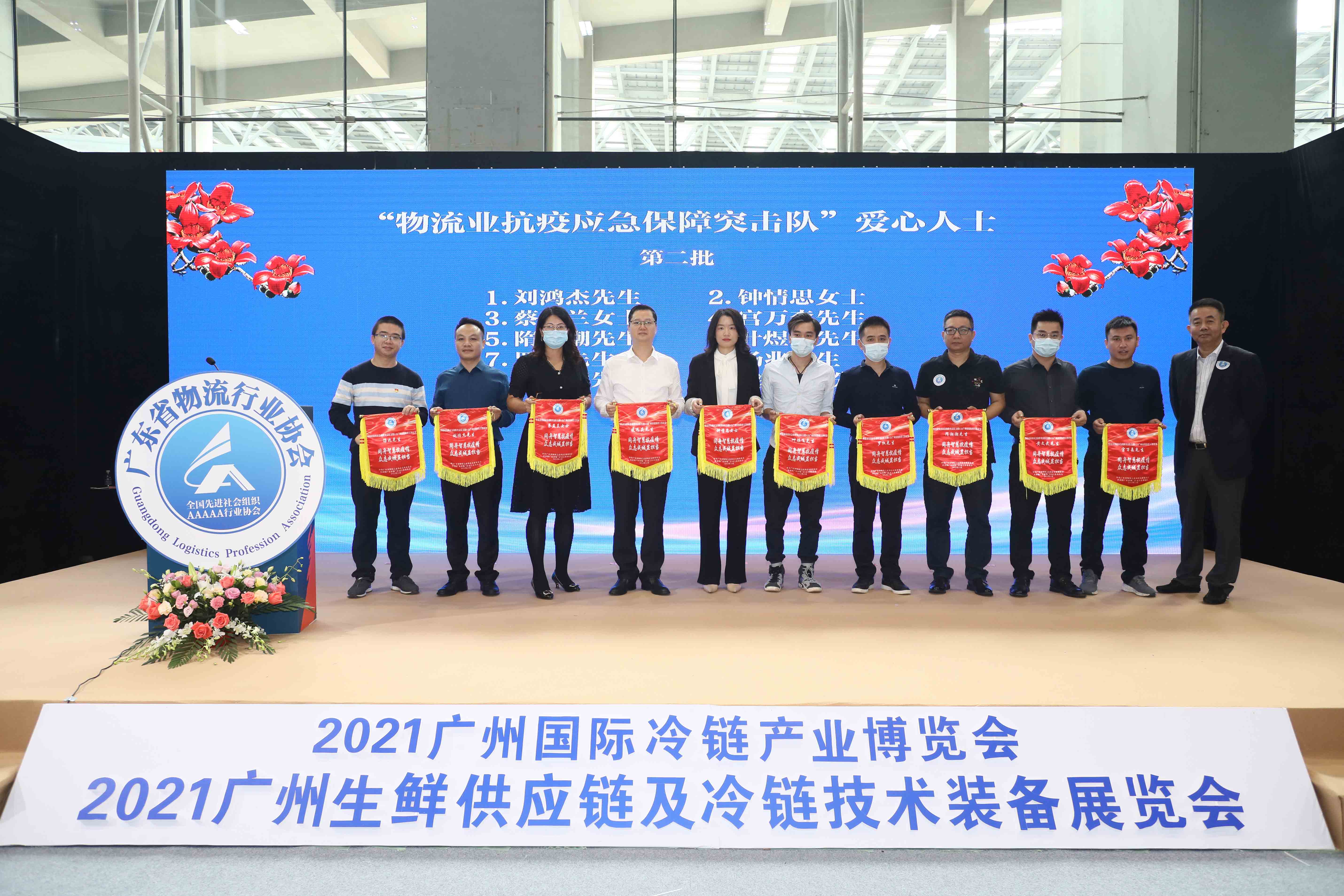 10月27日,协会党支部、省物流团工委举行“物流业抗疫应急保障突击队”爱心单位及爱心人士颁发纪念锦旗仪式。会议观看了“物流业抗疫应急保障突击队”抗疫期间行动的视频,协会刘武会长为东莞市晟世欣兴格力贸易有限公司等34家爱心单位和方少侠先生等18位到场爱心人士颁发纪念锦旗。