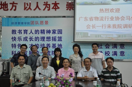 2011年5月9日,广东省物流行业协会秘书长马仁洪、常务副秘书长梁玉霞、教育培训工作委员会主任胡梅、主任助理邹丰及协会常务理事单位广州德镱数码技术有限公司总经理殷王龙等一行前往国家骨干高等职业院校--顺德职业技术学院开展调研工作。顺德职业技术学院经济管理学院院长齐振彪、副院长高钧、主任付平德及顺德商会会长梅文昌、北?港总经理田方人等人热情接待了协会调研组。