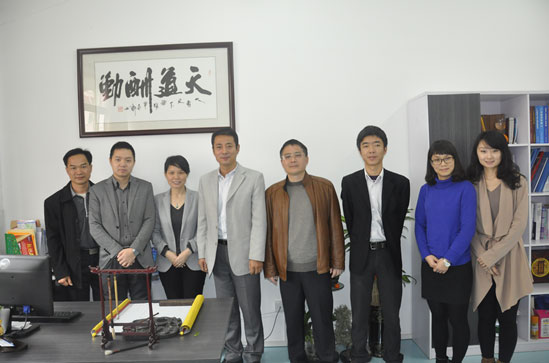 广东广播电视台现代教育频道执行总监魏子翔(左四),总制片人余向鸿(左五),制作中心主任颜湘雄(左二)