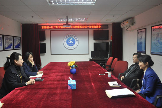 广东省职业技能鉴定指导中心调研员杨耀基(右二) 协会常务副秘书长梁玉霞(左二)