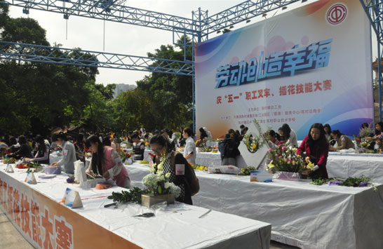 为提升职工操作技能,加强锻炼,促进职工高素质、高技能员工队伍的建设与培养。2015年4月12日,由陈村镇总工会主办,共青团陈村镇委员会、工业园区 管理服务中心、陈村总商会、陈村职业技术学校共同协办的主题为“劳动创造幸福”的陈村镇总工会庆“五一”叉车、插花技能大赛在陈村镇体育中心室外广场隆重举行。