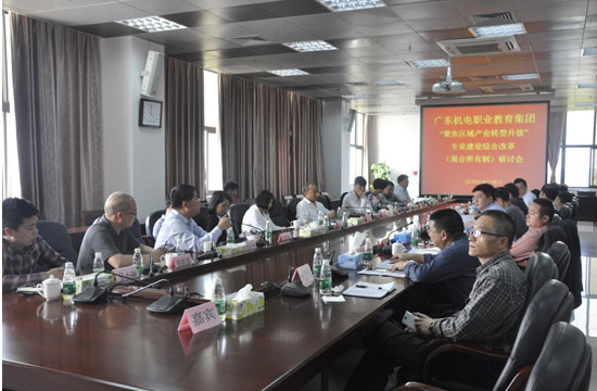 2015年4月15日(本周四),由广东机电职业教育集团主办的“聚焦区域产业转型升级”专业建设综合改革(混合所有制)研讨会在广东机电职业技术学院北校区召开。