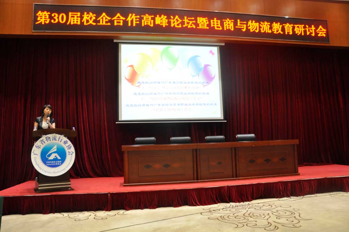 为给广大企业、院校于新形势下在企业转型升级、教育课程调整过程中所面临的难题与困惑提供一个交流探讨的平台,2015年5月13日,由广东广播电视台现代教育频道、广东省物流行业协会、广州市德镱数码技术有限公司共同主办,协会教育培训工作委员会承办的“2015校企合作高峰会暨电商与物流教育研讨会”于广州华泰宾馆隆重召开。