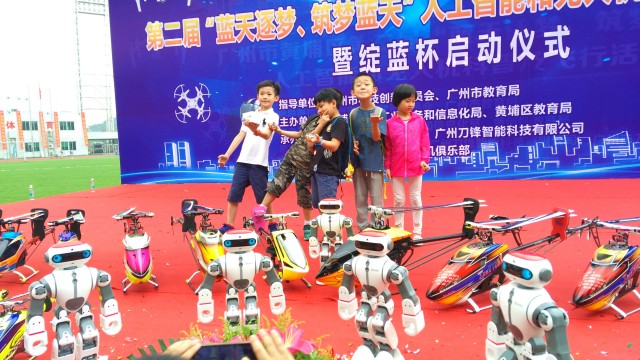 会上,广州市科创委、广州市教育局共同为广州市青少年“绽蓝杯”科技普及推广活动进行了启动。此外,活动还穿插进行了人工智能科普讲解以及无人机知识微信互动问答环节,与会观众踊跃参加了包括VR、智能机器人等五个互动区域的体验,现场对幸运观众发放了模型飞机等小礼品。