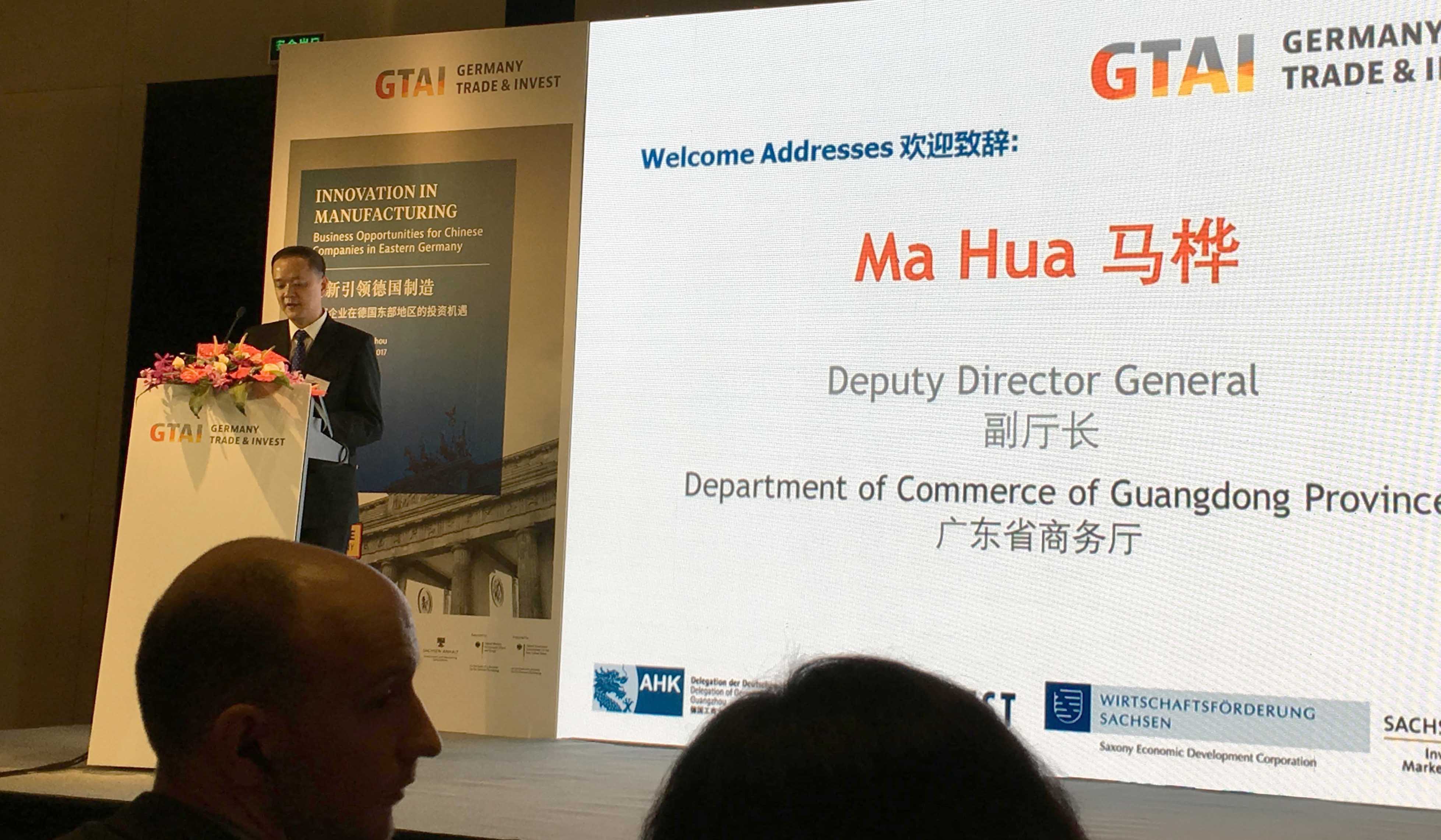 协会技术装备工作委员会贺国煌主任受邀参加德国联邦外贸与投资(Germany Trade and Invest)于7月12日在广州富力君悦大酒店举办以“创新引领德国制造—中国企业在德国东部的投资机遇”为主题的投资德国高端论坛。