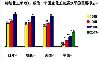 注:精细化工率(精细化工产值占化工总产值的比例)的高低已经成为衡量一个国家或地区化学工业发达程度和化工科技水平高低的重要标志。